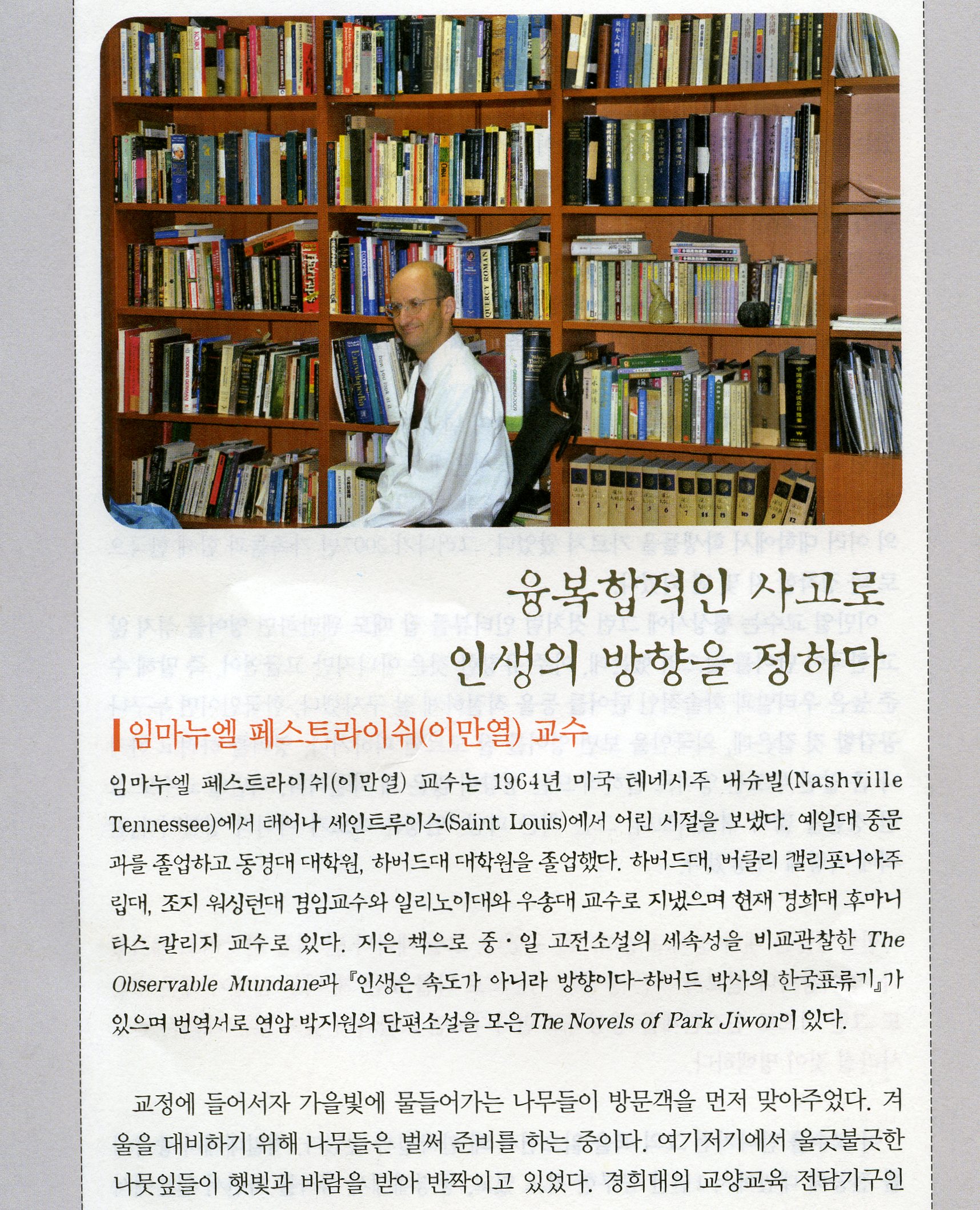 Christian Thought (기독교사상) on Emanuel’s work (article in Korean) December 14, 2011 by This article in the November, 2011 issue of “Christian Thought” (기독교사상) includes a rather lengthy interview in Korean.