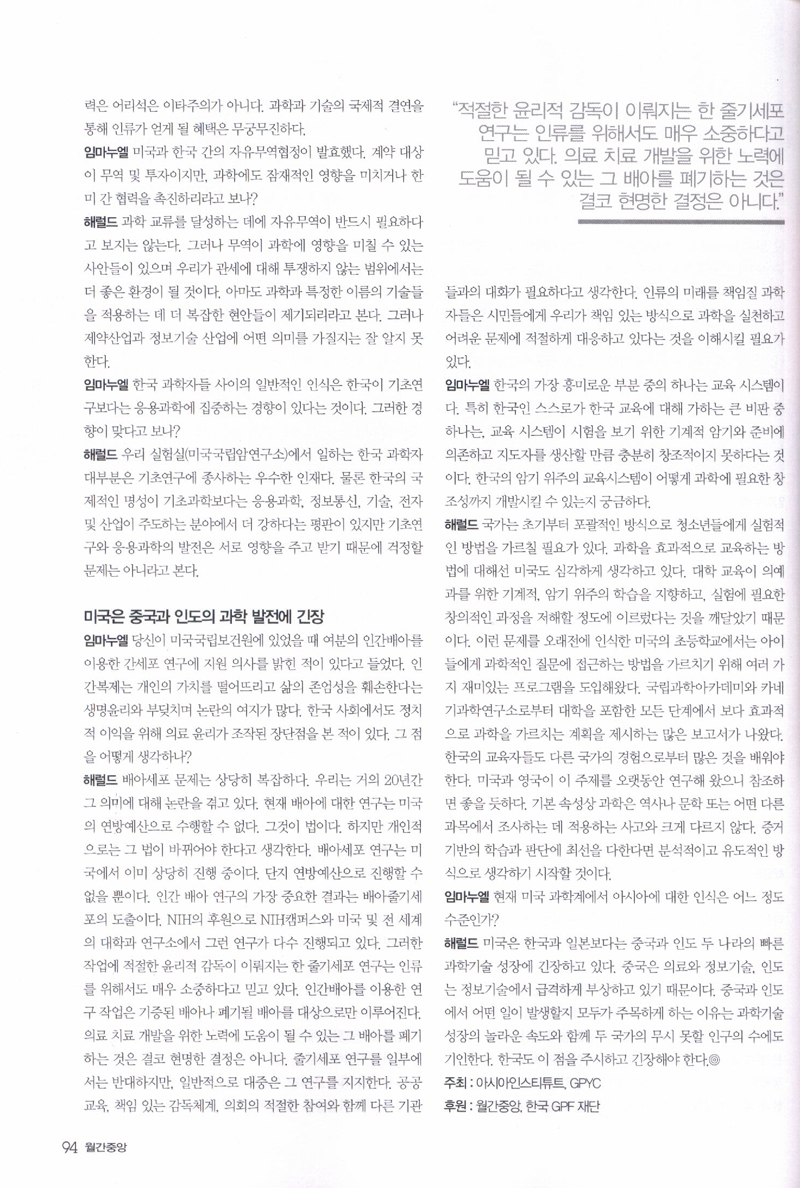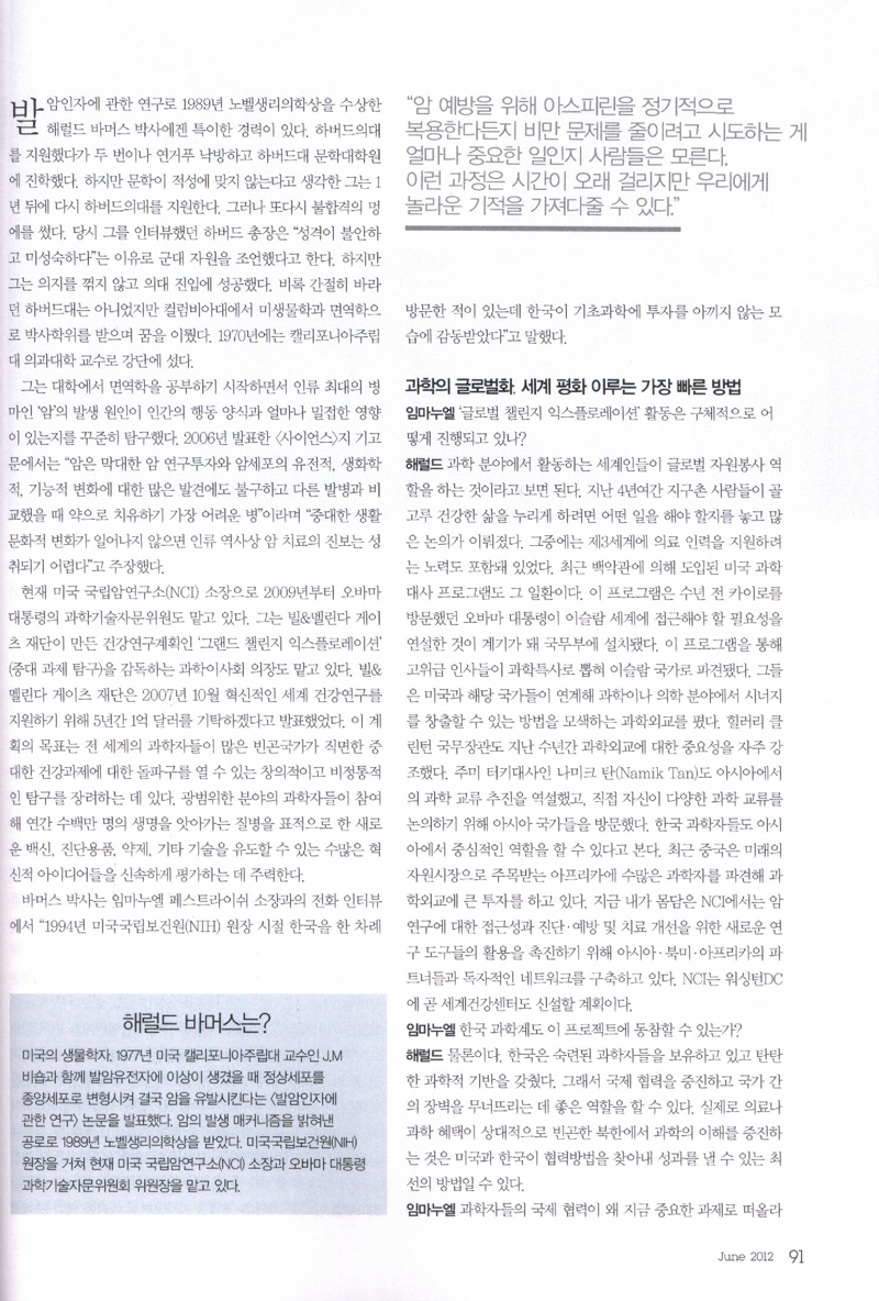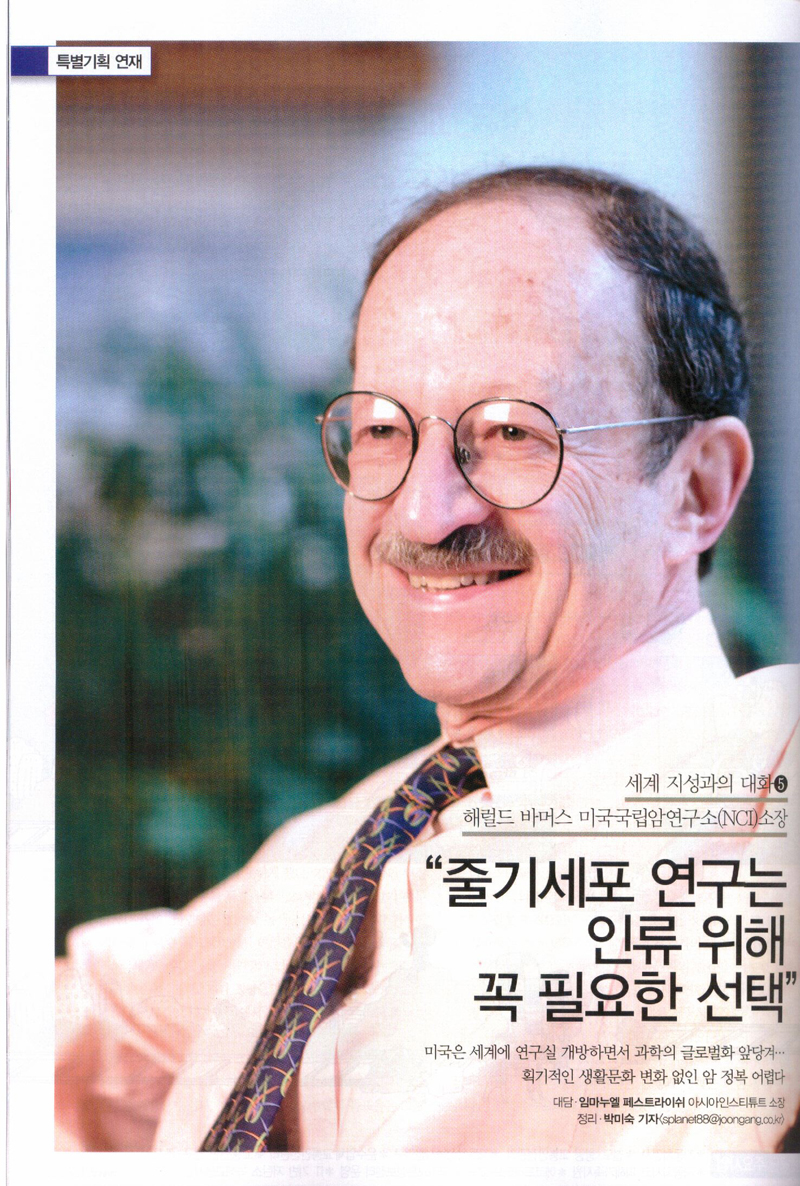 해럴드 버머스 미êµêµë¦½ì•”연구소 소장 월간중앙 6월호 May 31, 2012May 30, 2012 by 해럴드 버머스 미국국립암연구소 소장 월간중앙 6월호 아시아인스티튜트 세미나 Interview with Harold Varmus, Director of the National Cancer Institute, United States (in Korean for Jungang Monthly) May, 2012