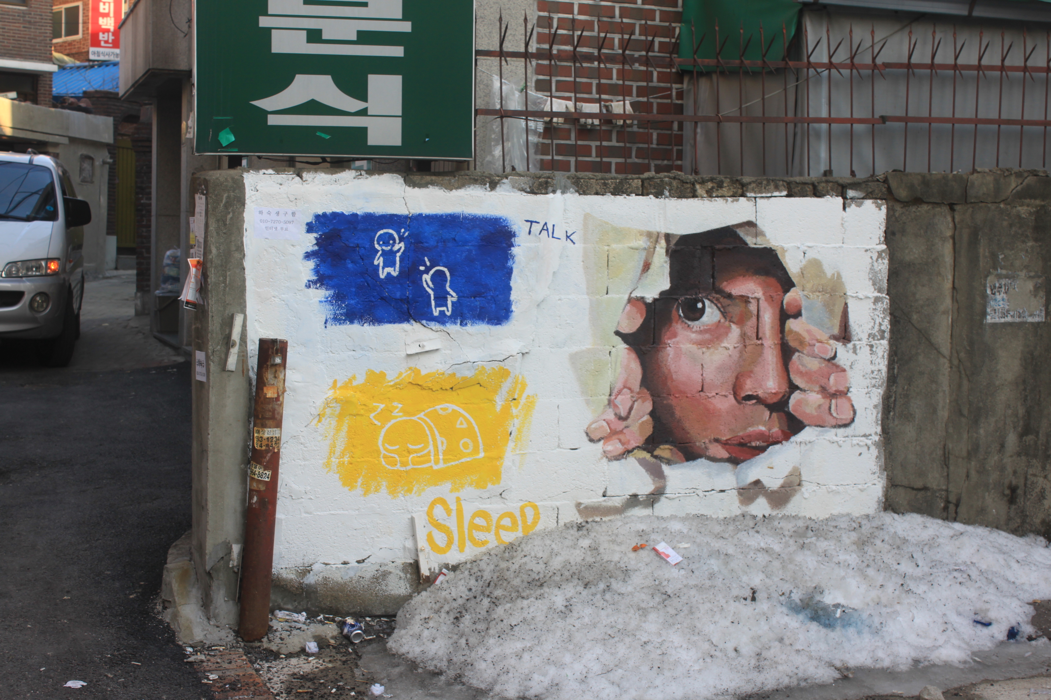 The School of Art at Kyung Hee University decided to devote its efforts to transforming the alleys around the university by painting a series of compelling posters with strong messages that call out to the passer by. The posters are remarkably effective. Here are a few examples.