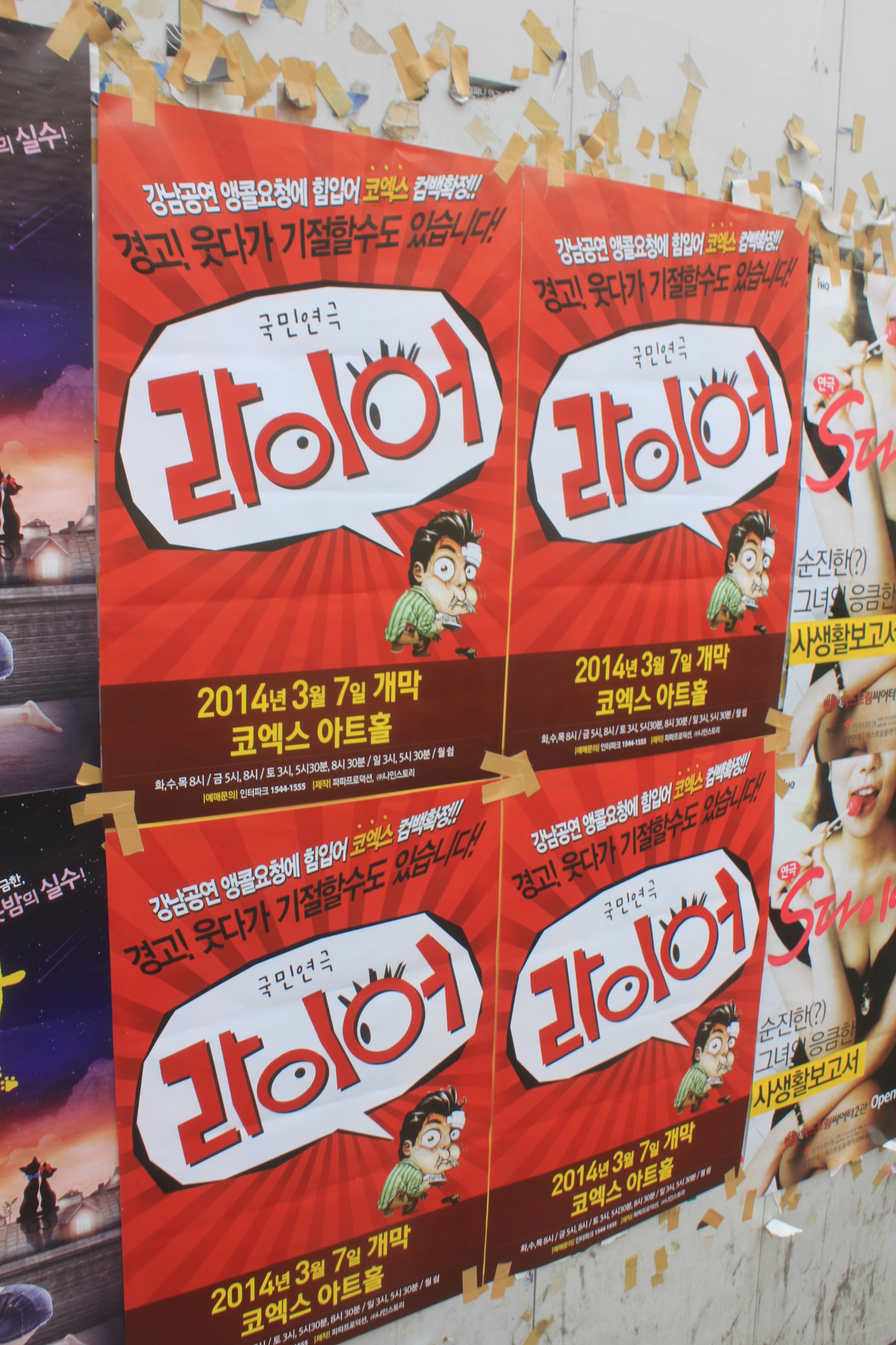 One fascinating aspect of Seoul culture is the vitality of the big stage musical. Seoulites are fascinated with musicals and see an attraction in them unlike most other cities. Many are imported from Broadway, but there are many homegrown versions as well. Here is a small selection of posters that I recently photographed.