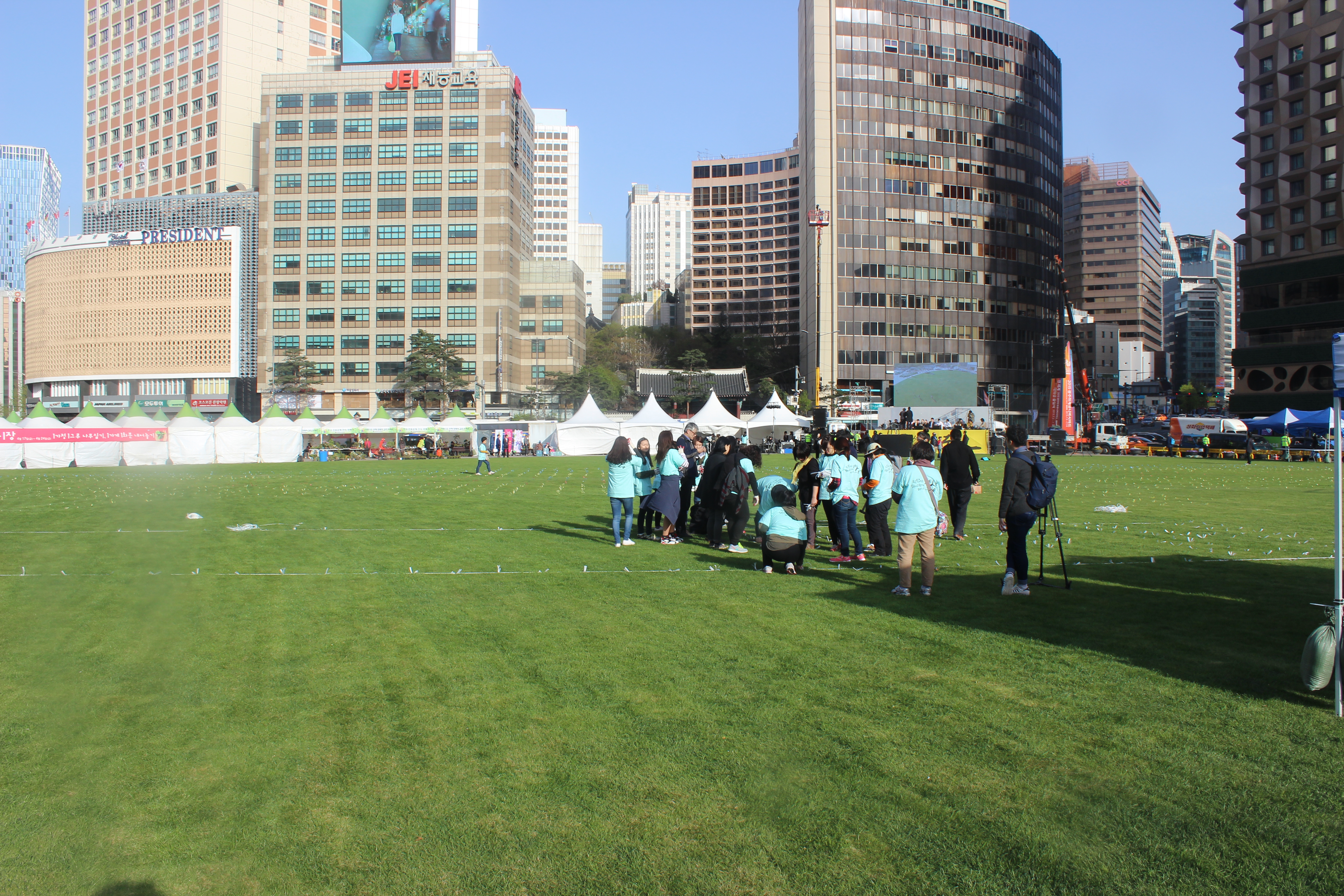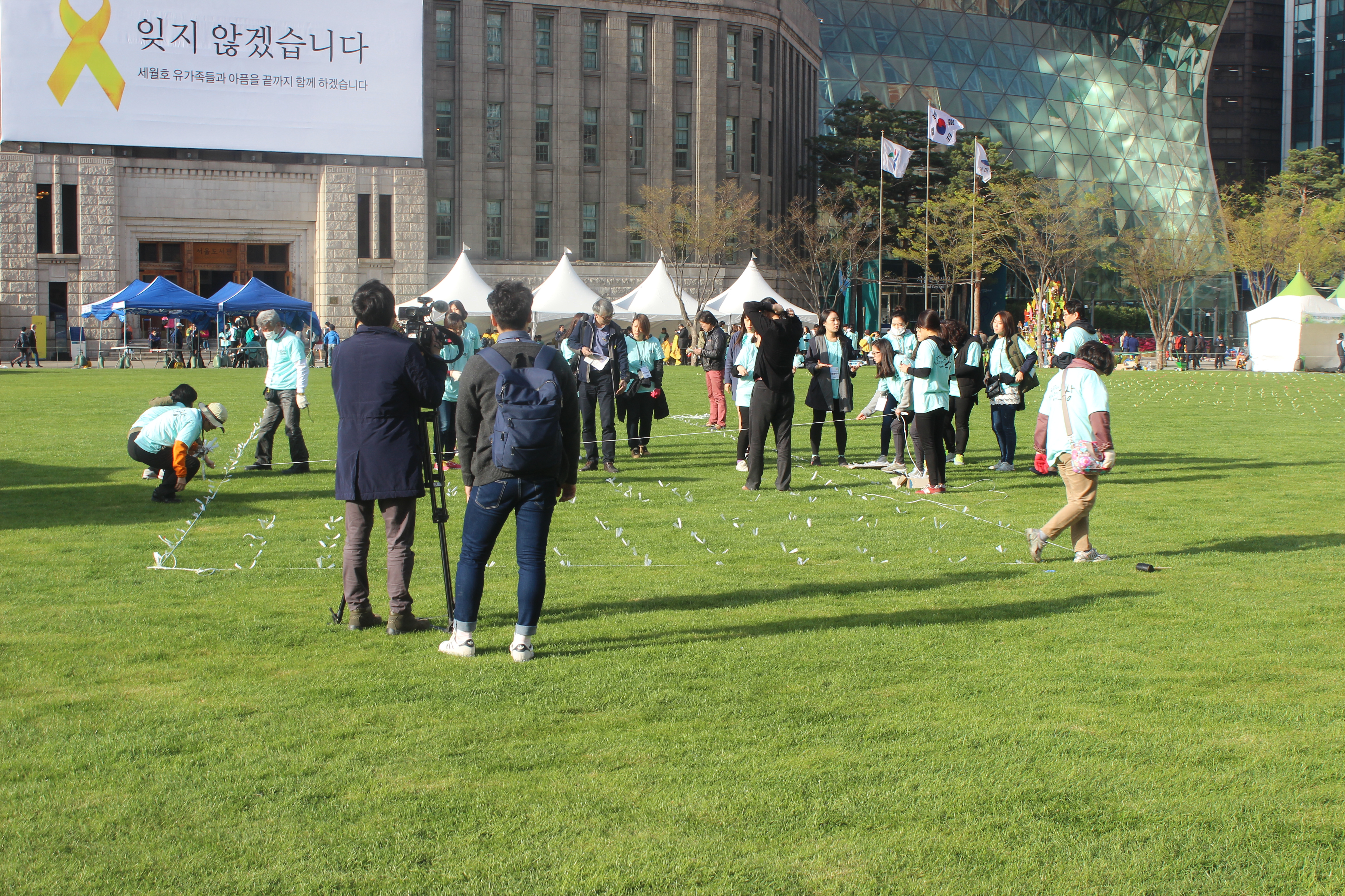 There was an immense gathering in front of Seoul City Hall this evening to commemorate the first anniversary of the sinking of the Sewol Ferry, an event that cost the lives of over three hundred high school students from a working class neighborhood because the ferry operator told them to stay in their seats even after the boat began to tip and he fled himself.
