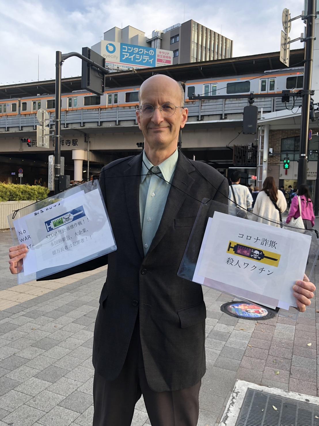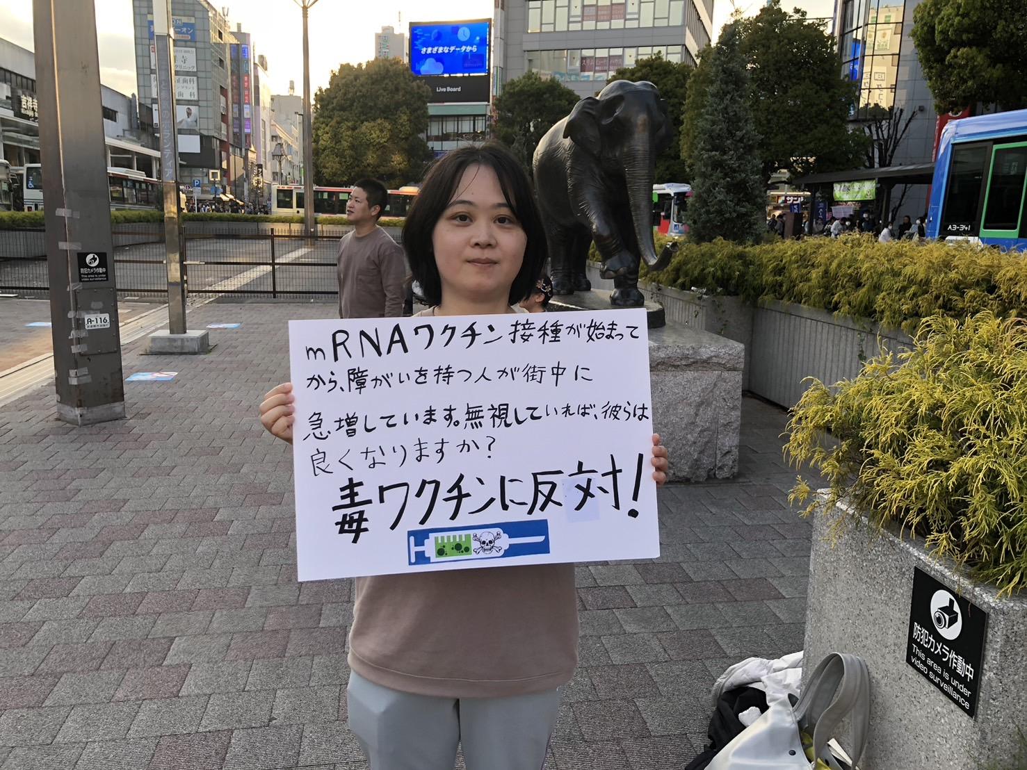 今日は 吉祥寺駅前に反殺人ワクチンデモを一時間くらいやりました。