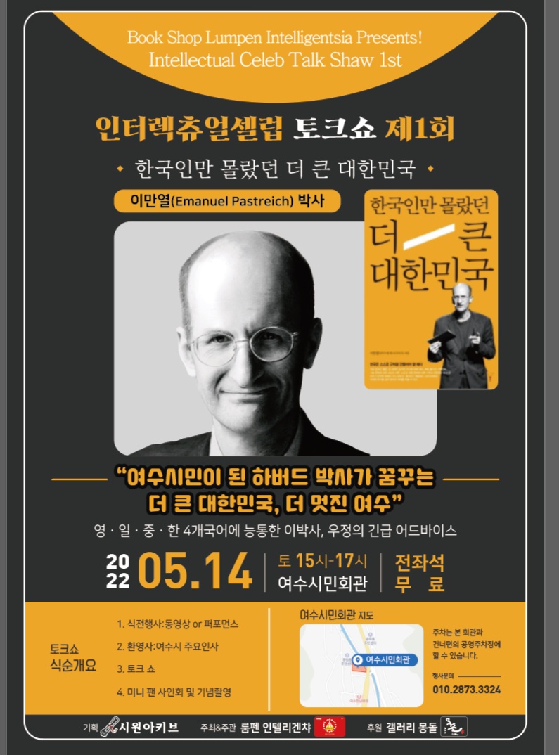 국가의 격이 높아지고 경제발전이 급격히 부상한 대한민국에 대해 필자는 외국인으로서 매우 복잡한 감정을 갖게 된다. 최근 서양 문명이 갈수록 사양(斜陽) 길에 접어드는 것을 보면서 동양문명, 특히 활기찬 많은 한국의 위대한 정신문화속에서 새로운 영감과 새로운 가치관을 찾는다. 한국의 전통 사상과 철학은 서양문명과 대체 할수 없는 특별한 가치가 있기 때문이다.