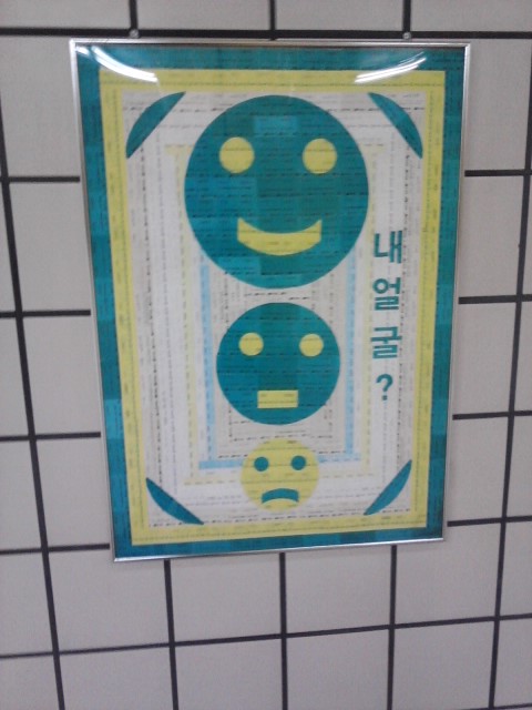This work of art, titled “My Face?” seems to speaking for Seoul Metro itself. Made up of the metro tickets previously employed by Seoul Metro arranged in the shape of faces, I found it most mysterious. It goes beyond the usual “feel good” designs of public transportation to suggest an effort at true artistic expression. Many such works are springing up in Seoul Metro these days.
