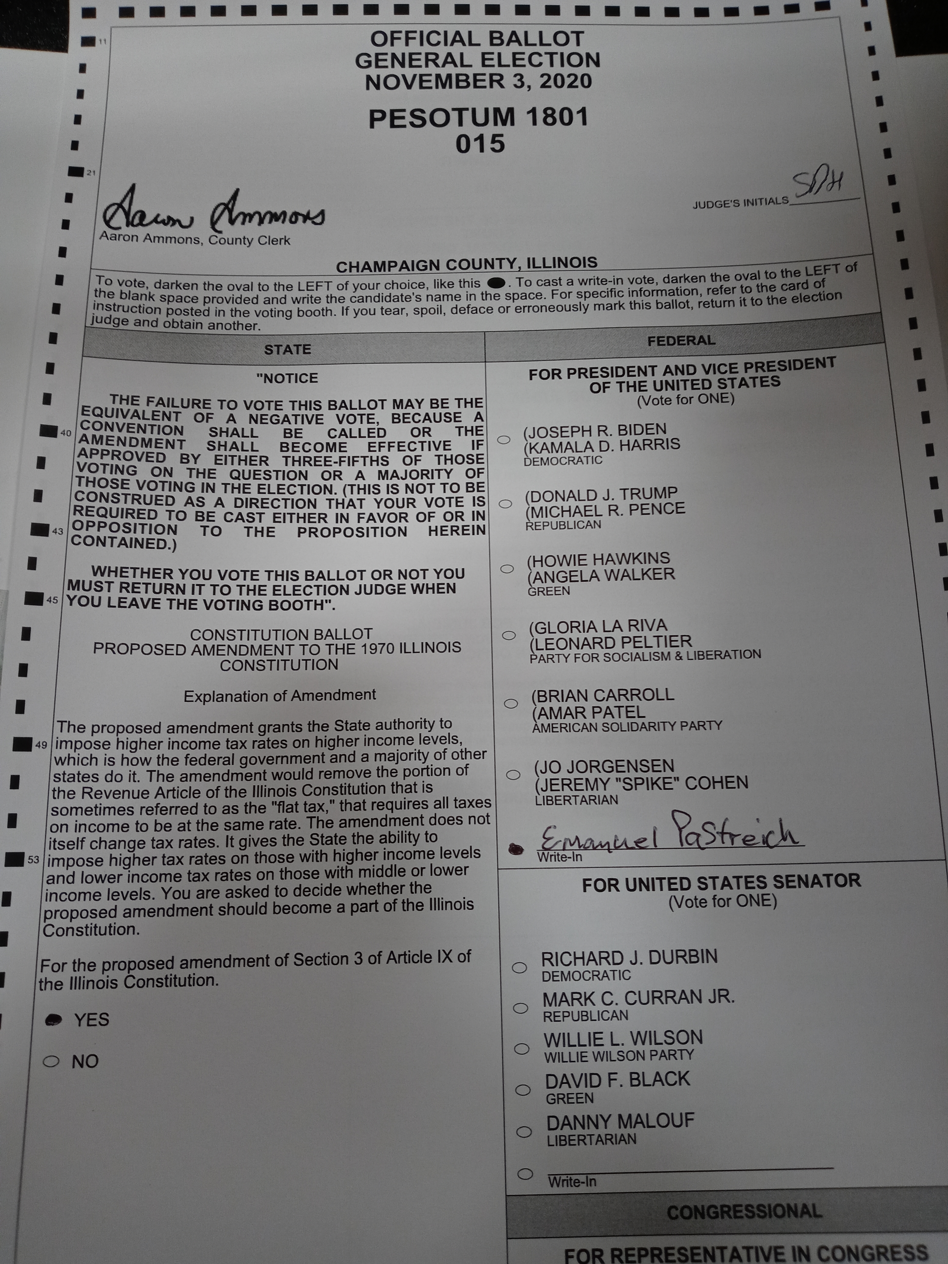One of my many supporters in the US was so kind as to send this photograph for the record. I know of many other such votes in defiance of a completely rigged bit of performance art.