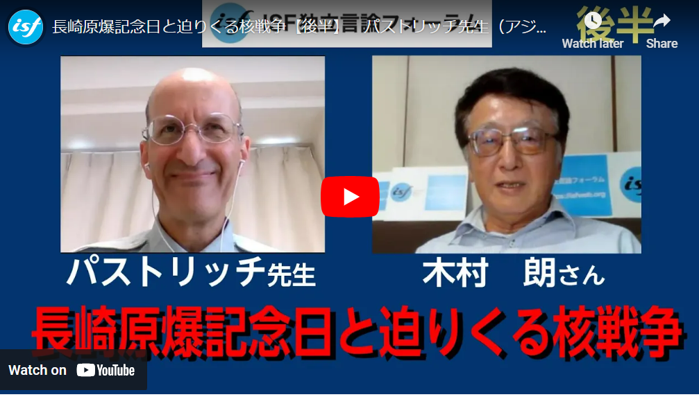 パストリッチ博士も語っているが、日本はその時すでに敗戦を決意し、ソ連を通してポツダム宣言受諾の意思を伝えていた(「ポツダム宣言」提示は7月26日)。原爆投下は、ウラン型とプルトニウム型の「実験」であり「データ収集」が目的だった。米国の実験により、一瞬で22万人以上の尊い一般市民が犠牲になったのだ。
