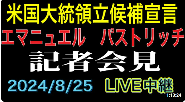 エマニュエル パストリッチ アメリカ大統領選挙立候補宣言 2024年8月25日
