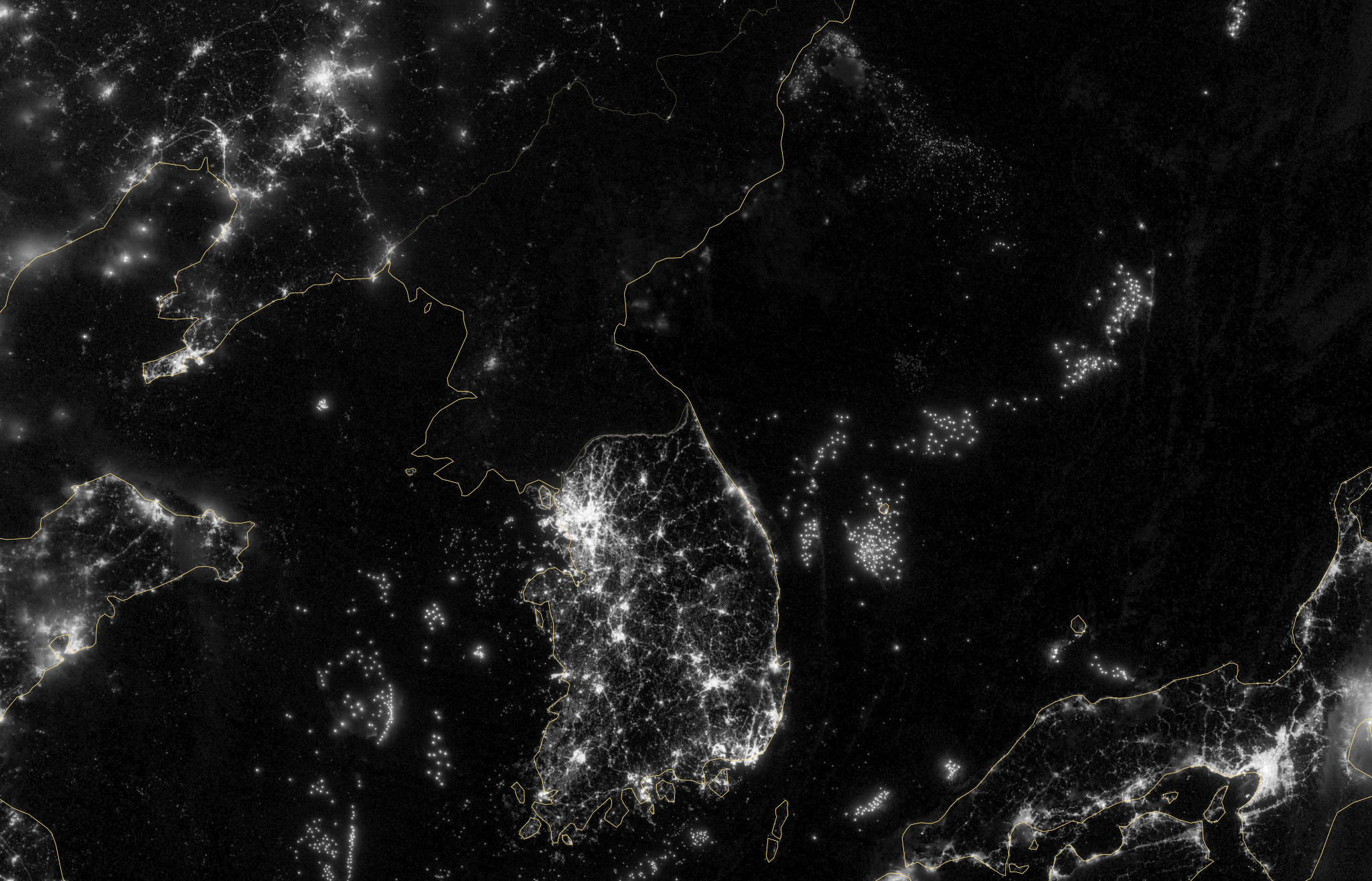 Korean Peninsula at night using a scientific approach, this image tells a