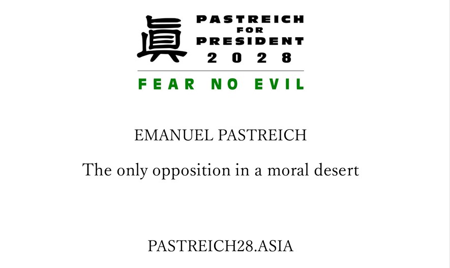 This is the first campaign commercial for Pastreich 2028. We welcome suggestions as to what topics to cover in our activities.