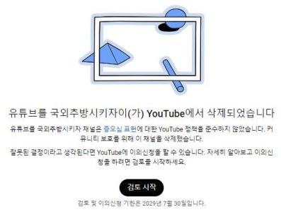 경고 하나 없이 채널 이름만으로도 빌미삼아 강제계폭시키는 유튜브의 횡포 epastreich December 19, 2024 December 19, 2024 Uncategorized 경고 하나 없이 채널 이름만으로도 빌미삼아 강제계폭시키는구나. 썅 쥬튜브(jew-tube)