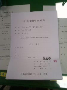 – 그 사건 항소심 선고 기일 7일 전에 재개신청을 했는데, 귀국 법원은 “이미 종결했다”는 ‘이유’를 대며 정당한 이유 없이 재개신청을 기각했습니다. 그래서 내가 “기피하겠다”는 의사를 밝혔는데, “그냥 선고해 버려, 그냥 선고해 버려, 그냥 선고해…!”하며 기피 의사에 대한 결정도 없이, 그냥 무시하고 판결 선고를 강행했습니다. 권위로 강도질하는 강도 사기꾼들(김우정, 이근수, 이원신)이 중요한 증거에 대한 고의적인 판단 누락을 한 것입니다. 나는 여기에 참을 수 없을 정도로 극도의 역겨움을 느낍니다.